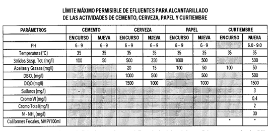 De acuerdo con la norma que establece los límites máximos permisibles (L.M.P) estandares para la fabricacion de papel ,cemento, cerveza y curtiembre D.S N° 003-2002 – Produce, y los valores maximos admisibles (V.M.A) de las descargas de las aguas residuales no domesticas en el sistema de alcantarillado sanitario D.S. N° 021-2009 – Ministerio de vivienda construcción y saneamiento (MVCS), se ha llegado a la siguiente conclusión.