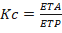 La determinación del coeficiente Kc. Se determinó mediante la siguiente relación: